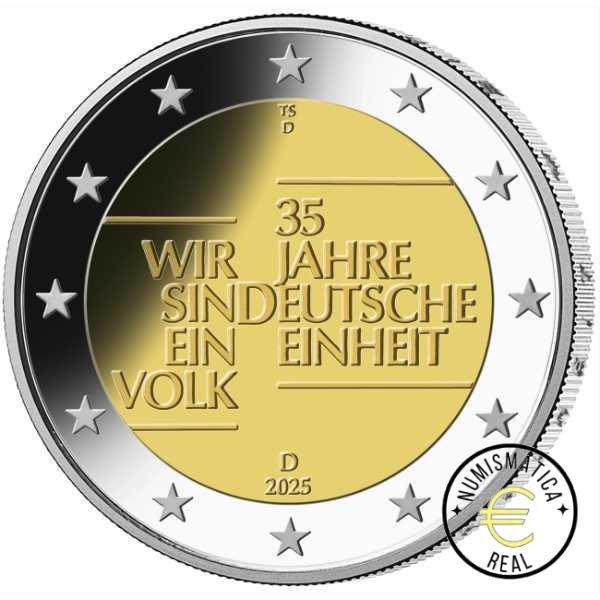 ALEMNIA 2025 2 EUROS CONMEMORATIVA UNC "35 ANIV. DE LA UNIDAD ALEMANA" S/C.ALEMNIA 2025 2 EUROS CONMEMORATIVA UNC “35 ANIV. DE LA UNIDAD ALEMANA” S/C.