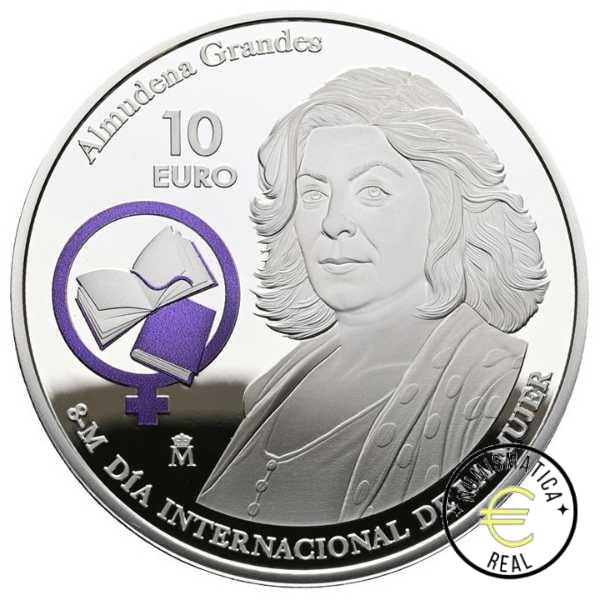 Con Motivo del Día Internacional de la Mujer que se celebra todos los años el 8 de Marzo La Fábrica Nacional de Moneda y Timbre emite una moneda en honor a una destacada mujer española; en esta ocasión la emisión está dedicada a la escritora y periodista Almudena Grandes (1960 -2021). Galardona con el Premio de Nacional de Narrativa en 2018, algunas de sus obras más destacadas han sido llevadas a la gran pantalla. Gran parte de su obra escrita gira en torno a la temática de la postguerra y de la transición española. En ella trata de ahondar en la historia reciente de España para así poder explicar las claves de la sociedad española de finales del siglo XX y principios del siglo XXI.